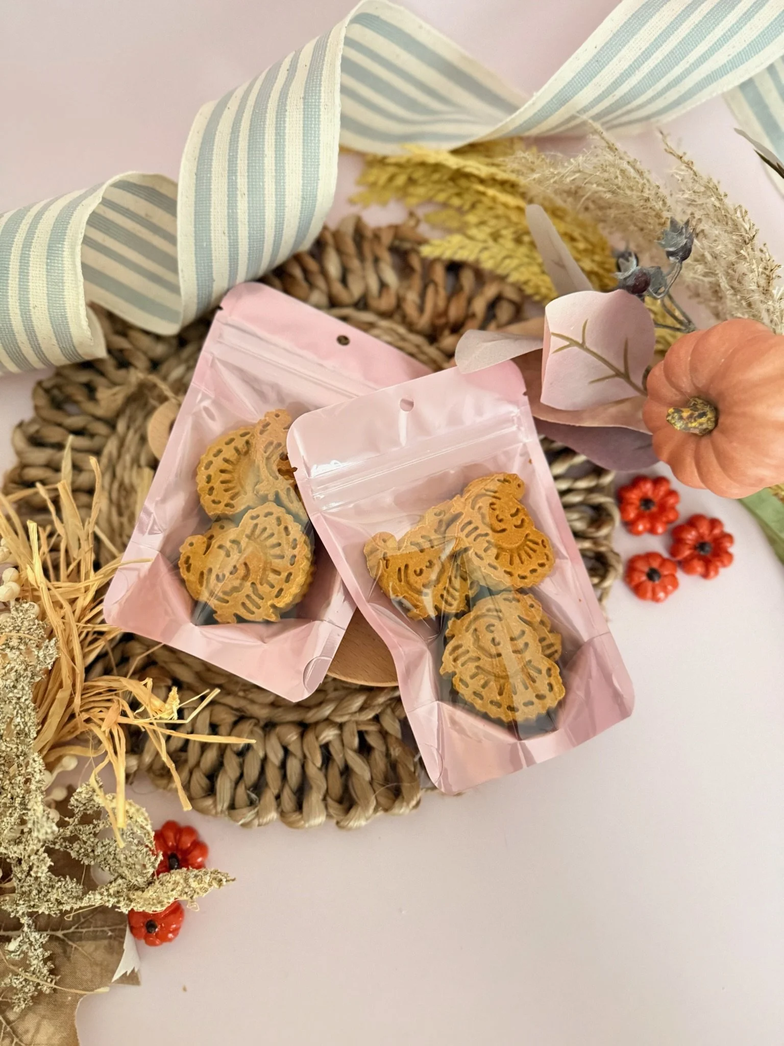 Due to the delicate nature of the cookies, some cracking may occur during shipping. We do our best to carefully package each order, however we are not responsible for any damages during shipping